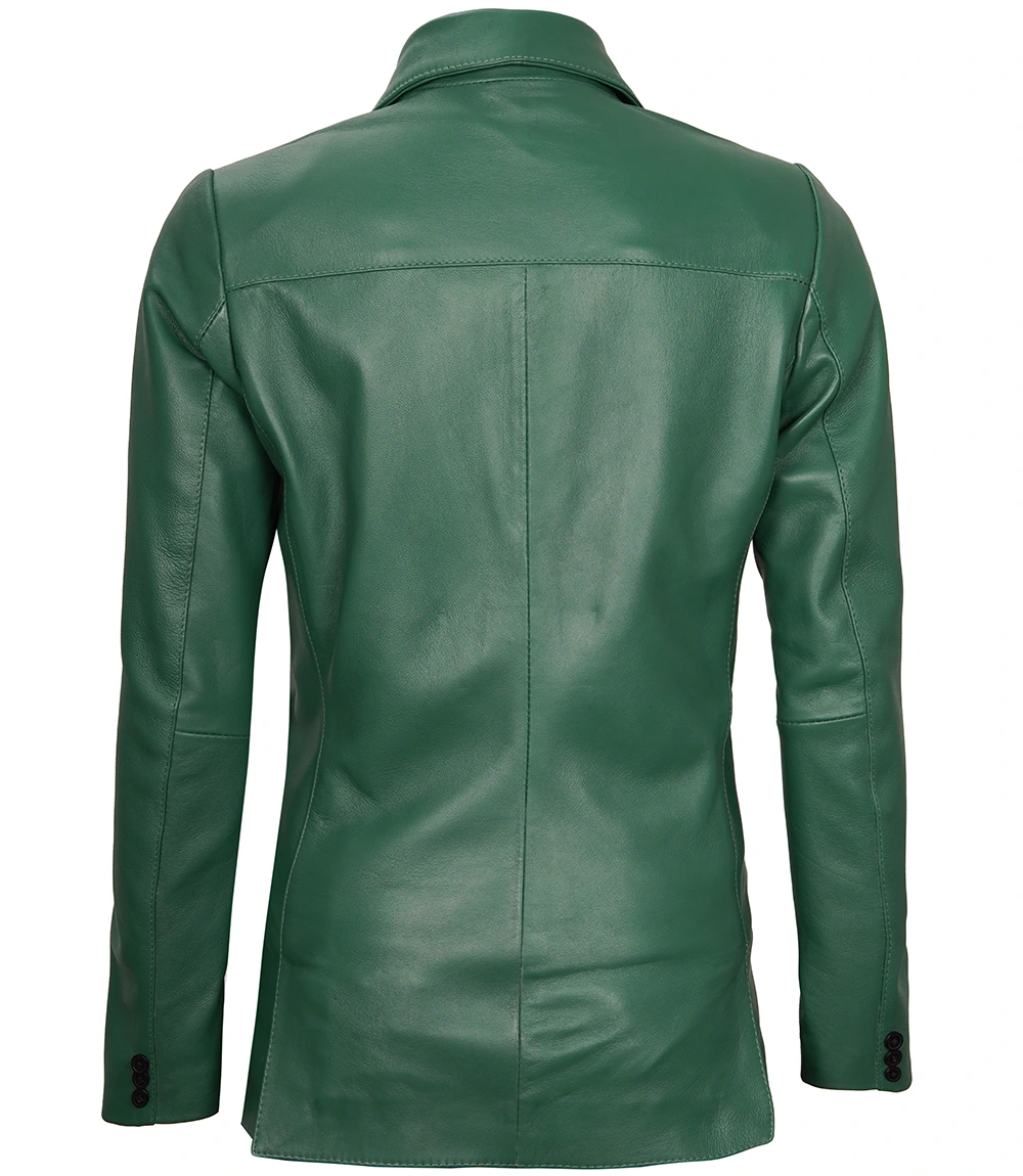 Upgrade your professional and casual outfits with our stylish Women’s Green Two Button Leather Blazer. Made from genuine leather, this blazer blends sophistication with a touch of boldness.