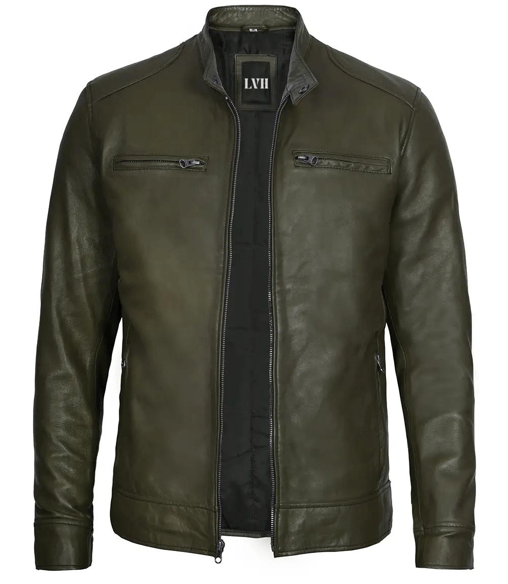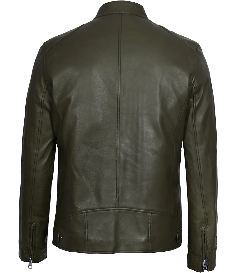 Elevate your style with our premium men’s dark green racer leather jacket. Expertly crafted from real lambskin leather, this jacket combines durability with a chic, timeless look. The rich dark green color adds a distinctive flair, making it a standout piece in any wardrobe.